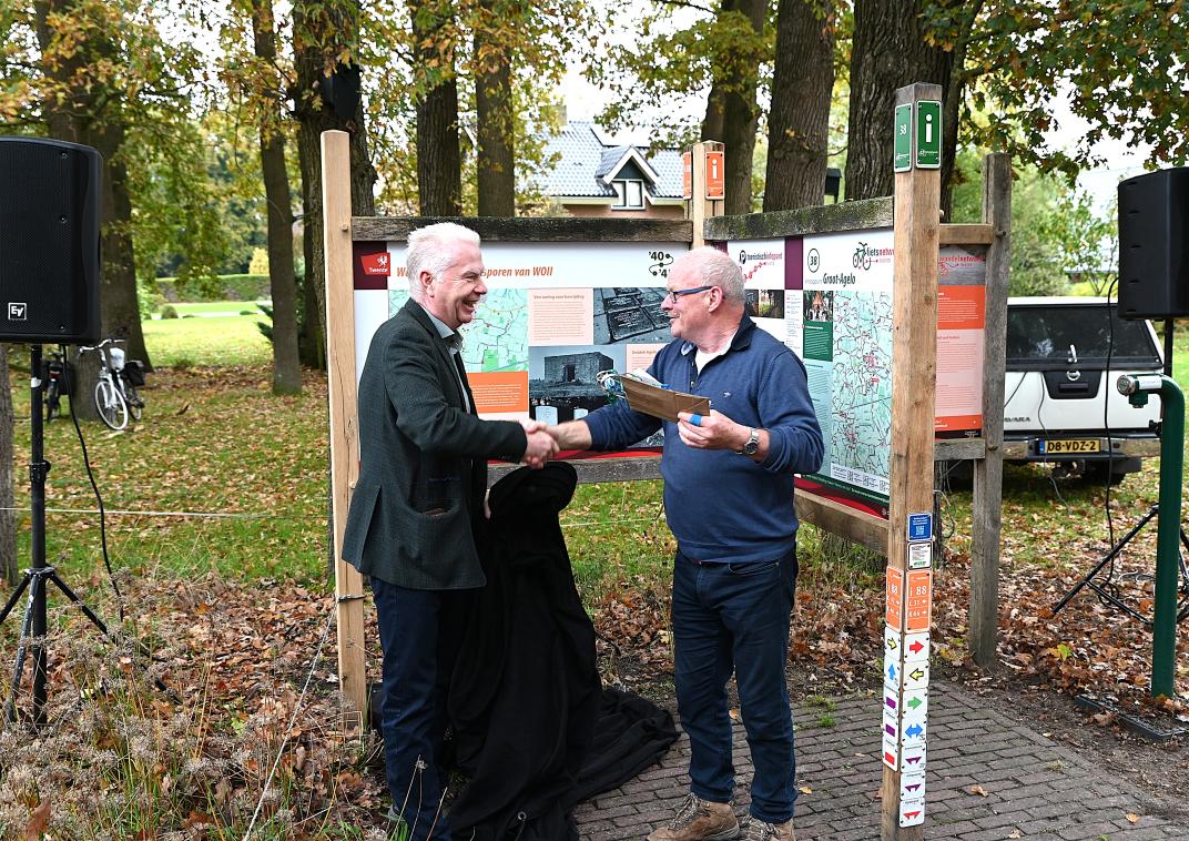 Inwoners van de gemeente Dinkelland kunnen voortaan letterlijk stappen zetten door het verleden. Op zaterdag 1 november werd in Agelo de bijzondere wandelroute ‘Wandelen langs de sporen van WOII’ feestelijk geopend. Tegelijkertijd werd bij het toeristisch informatiepunt aan de Borgstadweg een nieuw openbaar drinkwatertappunt in gebruik genomen. Het drinkwatertappunt is een frisse en duurzame voorziening voor iedereen die graag de omgeving verkent.