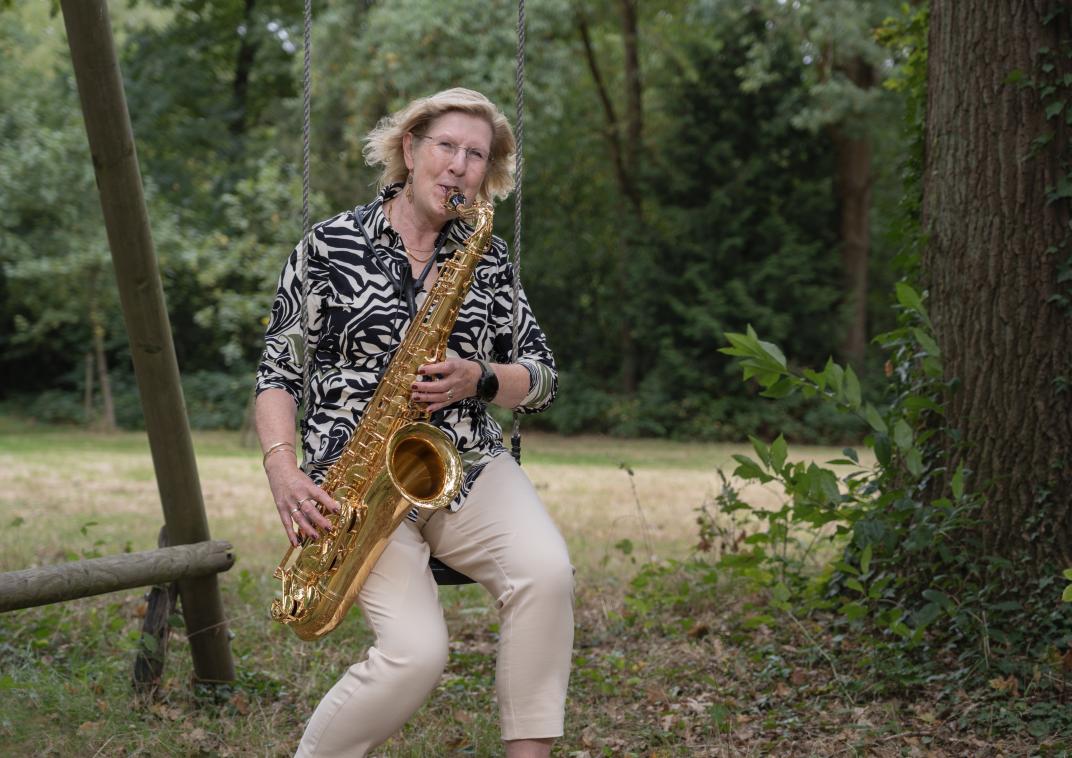 Voor haar kleinkinderen is Wilma Riesmeijer-Schouten vast geen doorsnee oma. Als zij bij ze op bezoek gaat, wil ze haar saxofoon wel eens meenemen. “Drie van hen spelen piano, drum en gitaar, en hoe mooi is het om samen een potje te jammen.” Twee jaar geleden begon ze met saxofoon spelen. “Een prachtig instrument, je kunt er zacht en rustig op spelen, maar ook krachtig en rauw.”